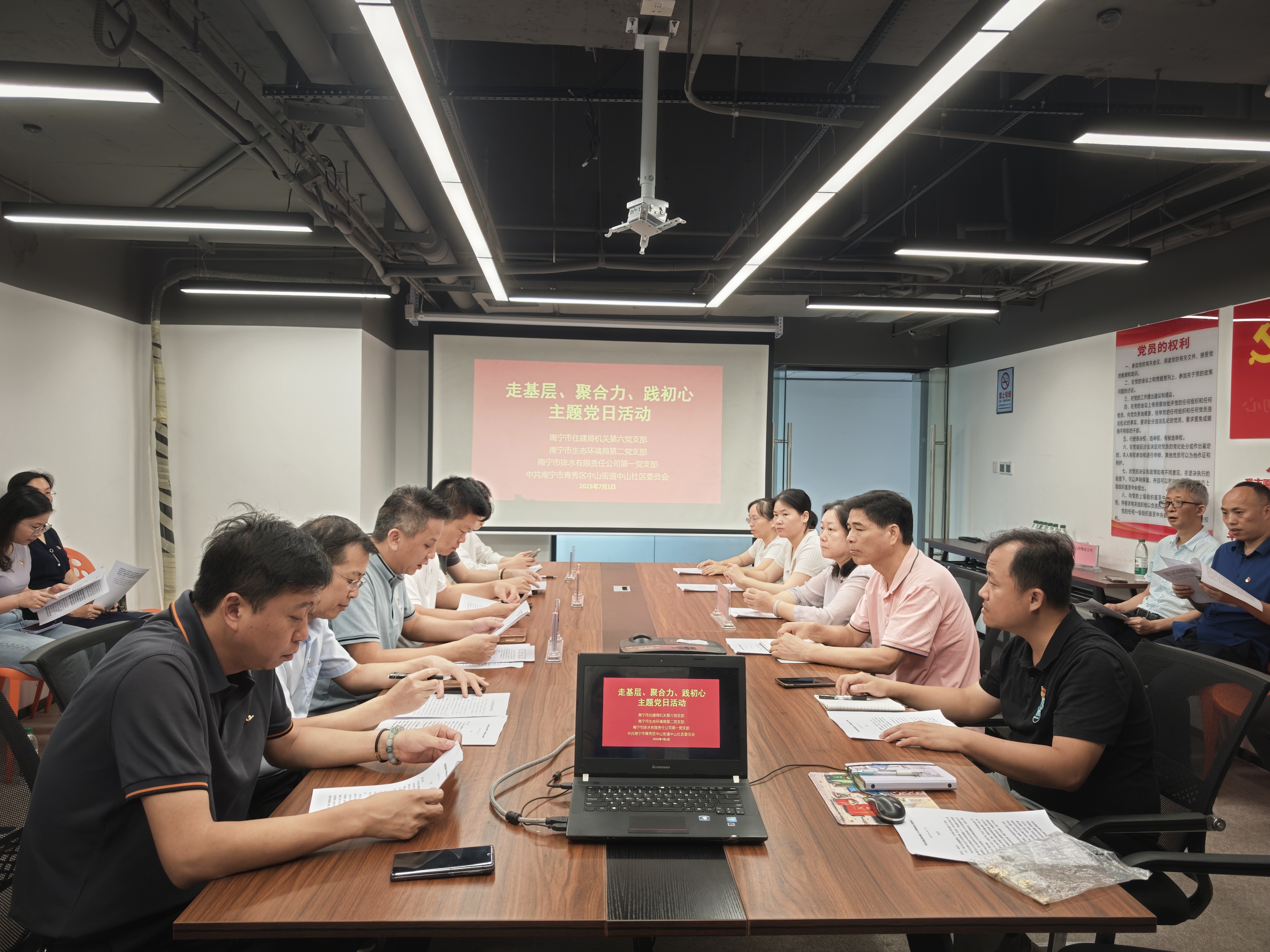 為切實(shí)加強黨建引領(lǐng),進(jìn)一步將黨的組織優(yōu)勢轉化為推動(dòng)基層治理、服務(wù)民生發(fā)展的實(shí)踐動(dòng)能,充分彰顯新時(shí)代共產(chǎn)黨員的初心本色與使命擔當,7月1日上午,市排水公司第一黨支部聯(lián)合南寧市住建局機關(guān)第六黨支部、南寧市生態(tài)環(huán)境局第二黨支部以及中山社區黨委,共同開(kāi)展了“走基層、聚合力、踐初心”主題黨日活動(dòng)。南寧建寧水務(wù)集團黨委委員、副總經(jīng)理周柏建,南寧市住建局機關(guān)第六黨支部書(shū)記、公用事業(yè)三科科長(cháng)徐修平,南寧市生態(tài)環(huán)境局第二黨支部書(shū)記、水生態(tài)環(huán)境科負責人農姁霖,市排水公司黨總支書(shū)記、董事長(cháng)路佳,市排水公司第一黨支部書(shū)記、副總經(jīng)理韋雄飛,中山社區黨委書(shū)記韋萍、副書(shū)記黃凡書(shū)及各支部黨員代表一同參加此次活動(dòng)。