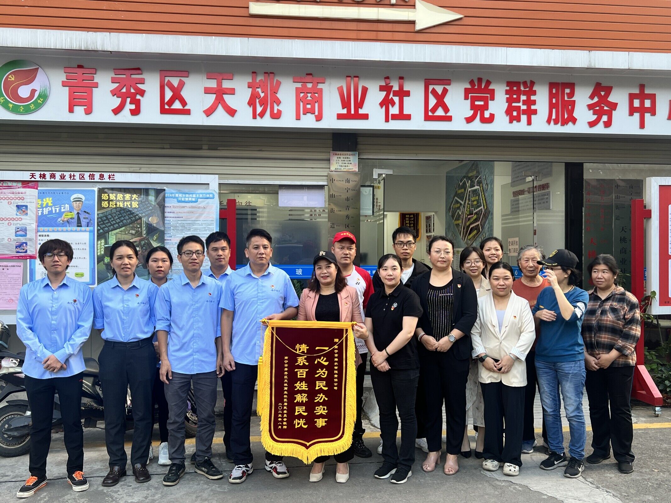 圖為天桃商業(yè)社區代表向市排水公司贈送錦旗