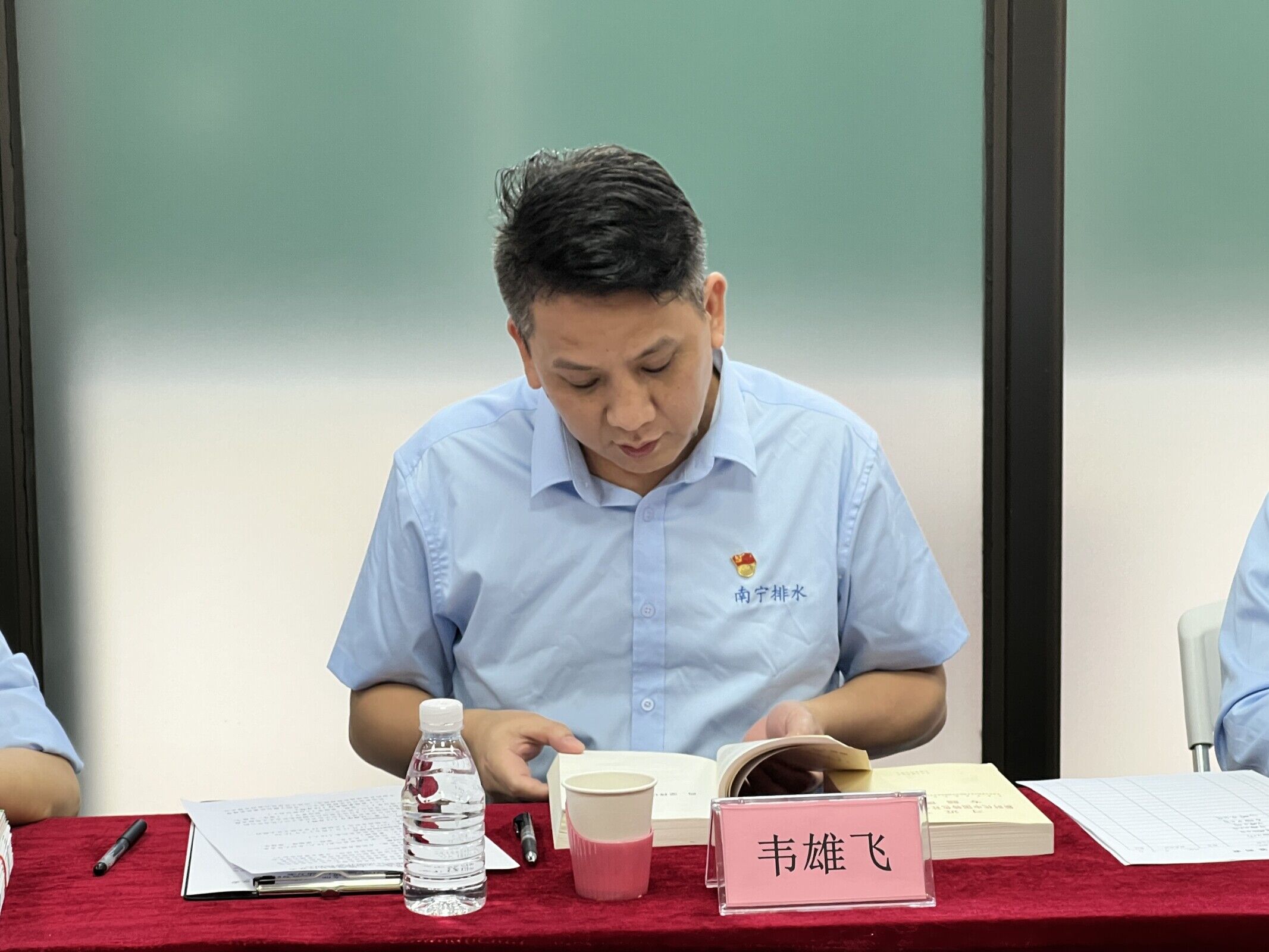 圖為市排水公司第一黨支部書(shū)記韋雄飛作黨建工作交流發(fā)言
