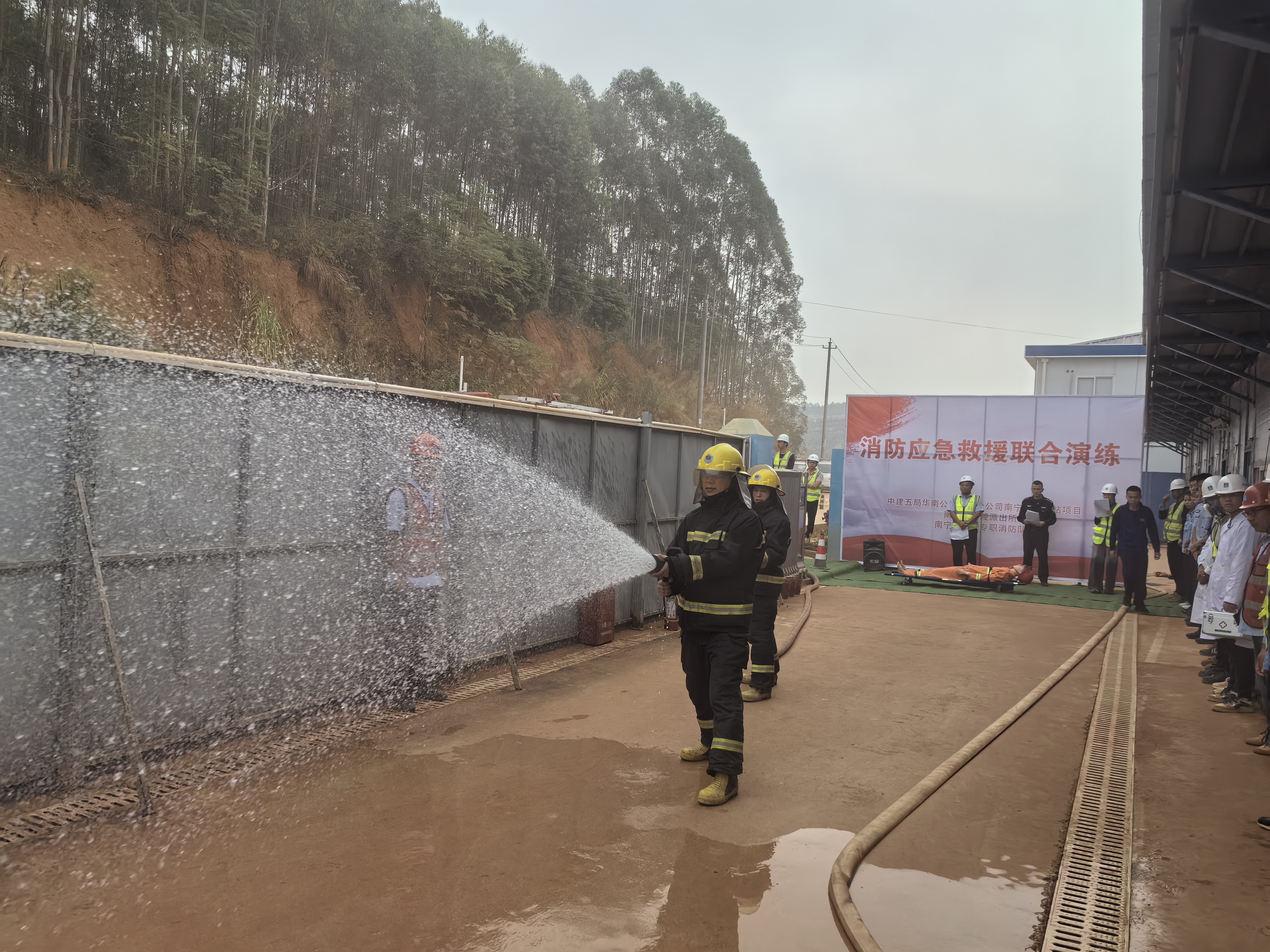 本次消防演練模擬的場(chǎng)景為工人生活區板房突發(fā)大火,有1名工人被困,項目部即刻啟動(dòng)消防緊急預案,設置警戒疏散組、應急救援組、通訊聯(lián)絡(luò )組和醫療救護組,派出所工作人員配合協(xié)調開(kāi)展“滅火”工作,消防隊將消防車(chē)駛入現場(chǎng)工人生活區,啟動(dòng)消防車(chē)水泵的救援全過(guò)程。