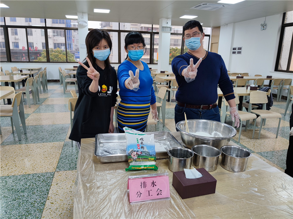 待一切準備就緒,比賽開(kāi)始。各參賽隊分工明確,且有各自的戰術(shù),大家爭分奪秒地和面、按窩、包餡、搓圓、擺盤(pán),團結協(xié)作,其樂(lè )融融……在選手們的巧手下,一個(gè)個(gè)充滿(mǎn)愛(ài)心的湯圓逐漸成形。隨后,裁判組通過(guò)對各參賽隊湯圓數量與質(zhì)量的雙重評比,最終由排水公司韋春芳、郭念城、李婧瑤組成的參賽隊獲得了第一名。