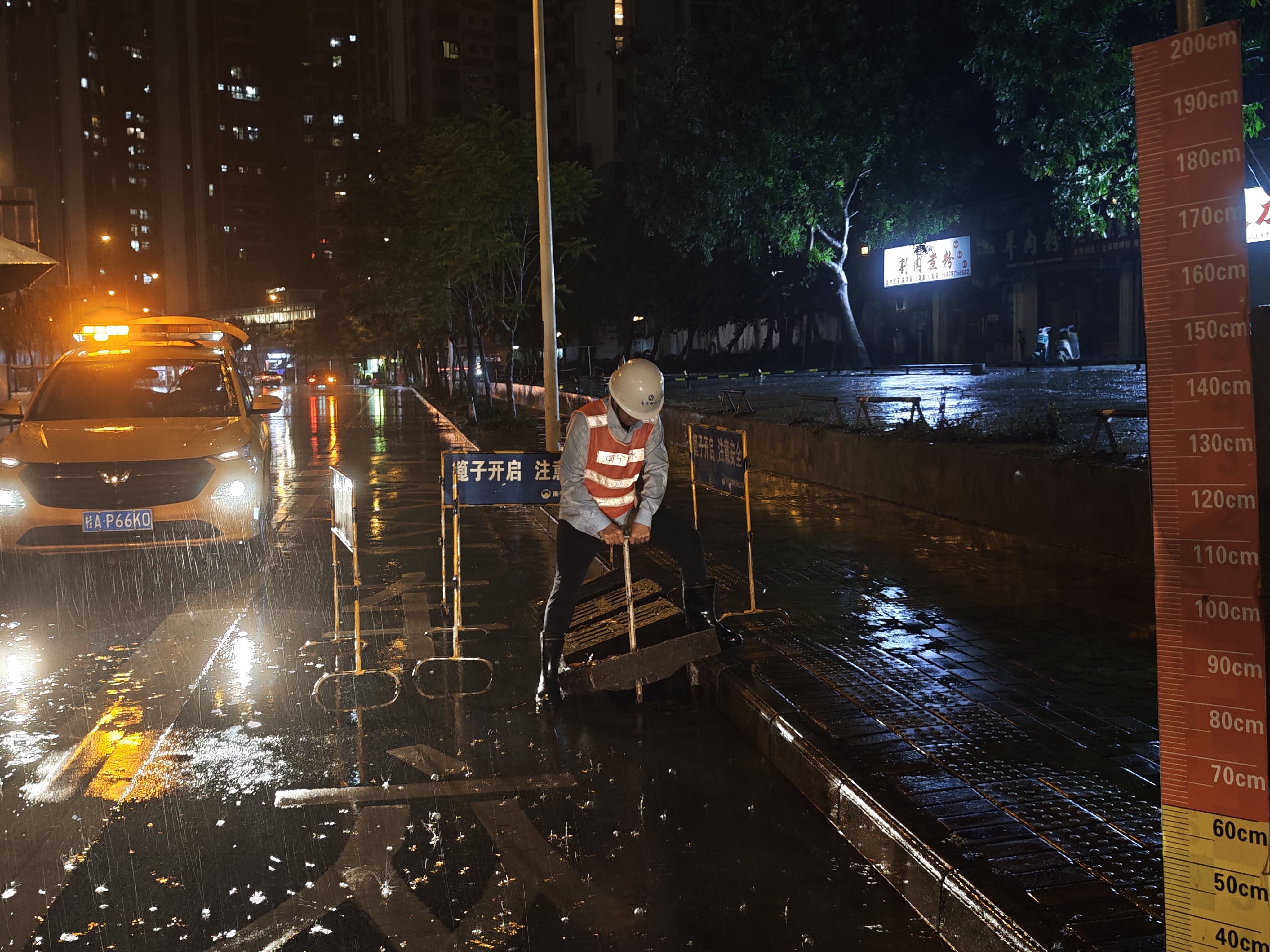 5月27日19時(shí),市排水公司運維管理員梁煜華到達大淥嶺路口,擺放警示標識、設置安全隔離帶、打開(kāi)雨水箅子和井蓋,一套動(dòng)作行云流水。在確認該處排水順暢后,他跟值守的工作人員打了聲招呼,又匆匆趕往鳳嶺北路楓林路口,查看積水處置情況,引導過(guò)往車(chē)輛有序通行。