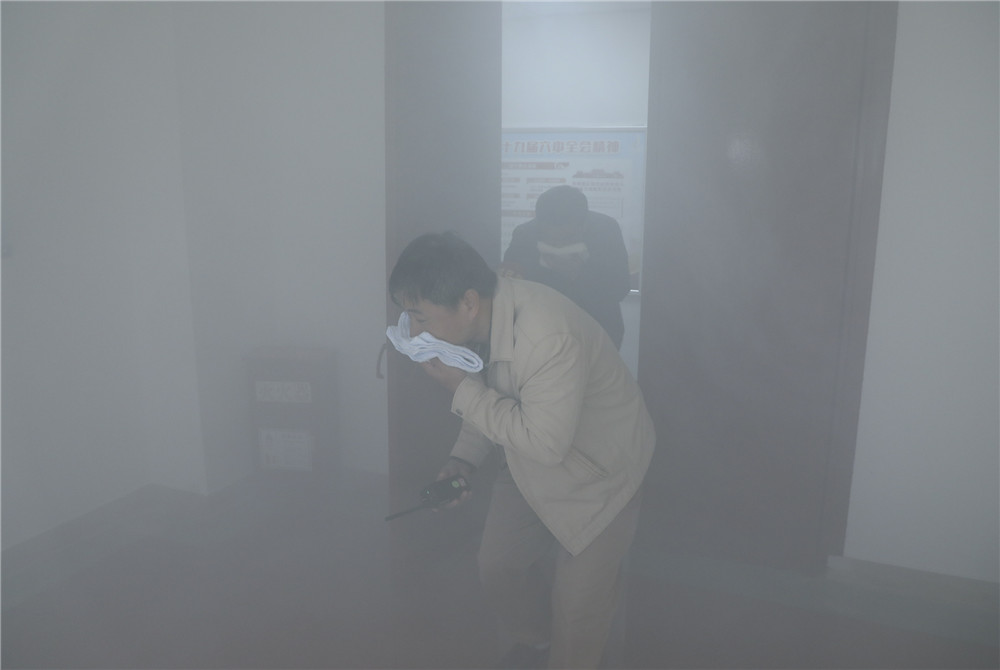 煙霧在樓層中彌漫開(kāi)來(lái),空氣里傳來(lái)濃烈刺鼻的氣味,在人工煙霧制造的“著(zhù)火現場(chǎng)”背景下,大家按照緊急疏散的程序和要求,遵循“左手用毛巾捂住鼻子、嘴巴,右手扶著(zhù)墻壁走”的規范姿勢,在安全疏導員的指揮下有條不紊地從安全通道撤離,各單位員工一個(gè)不少的有序集中在辦公大樓前的安全地帶。整個(gè)演練活動(dòng)達到了預期效果,取得了圓滿(mǎn)成功。